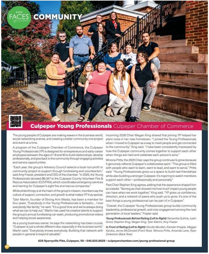 We are excited to share that the Culpeper Chamber of Commerce’s Young Professionals Advisory Council is featured on the back page of the 2026 Faces of Culpeper Magazine.