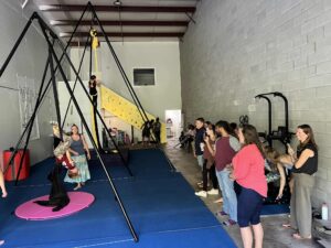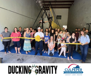 On Friday, September 19, 2025, we gathered to celebrate the grand opening of DuckingGravity, Culpeper’s newest aerial arts studio! Located at 15532E Montanus Dr, this inclusive space offers aerial classes for all ages, bodies, and abilities, helping participants build confidence, have fun, and defy gravity in the process.